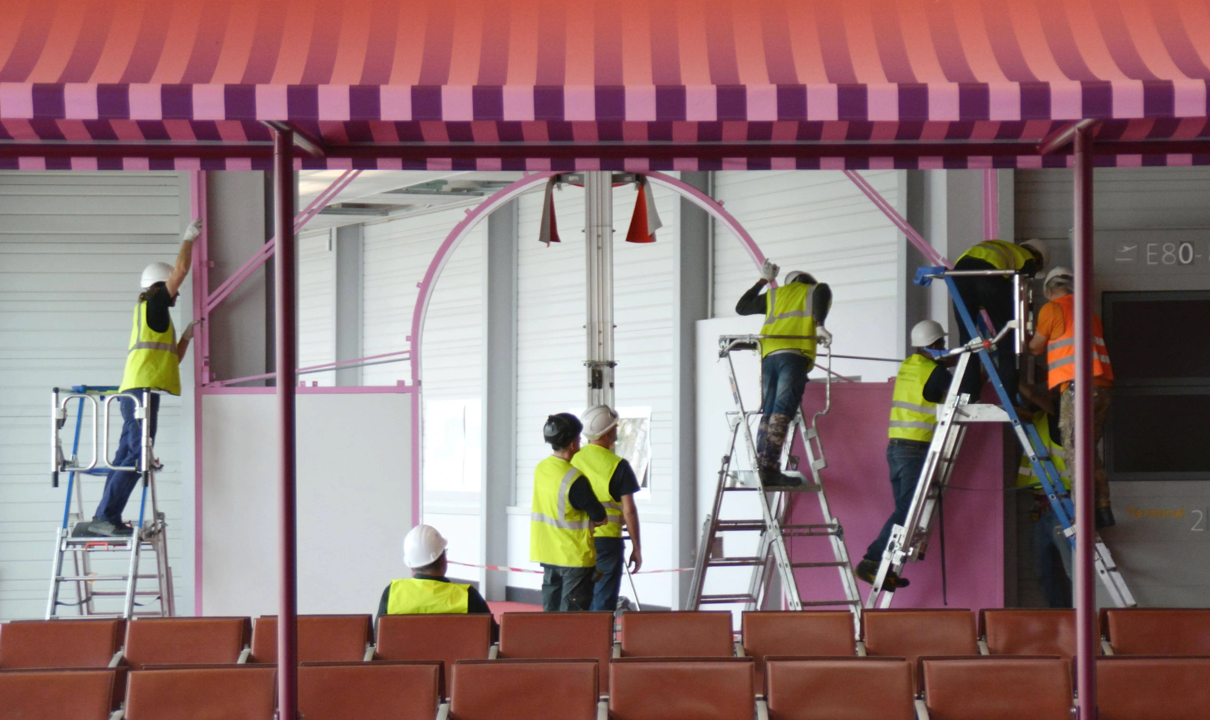 L’objectif était de créer un espace immersif destiné à accueillir les délégations sportives, les journalistes et les visiteurs du monde entier, à leur arrivée comme à leur départ, en incarnant l’esprit des JO dans un contexte aéroportuaire.