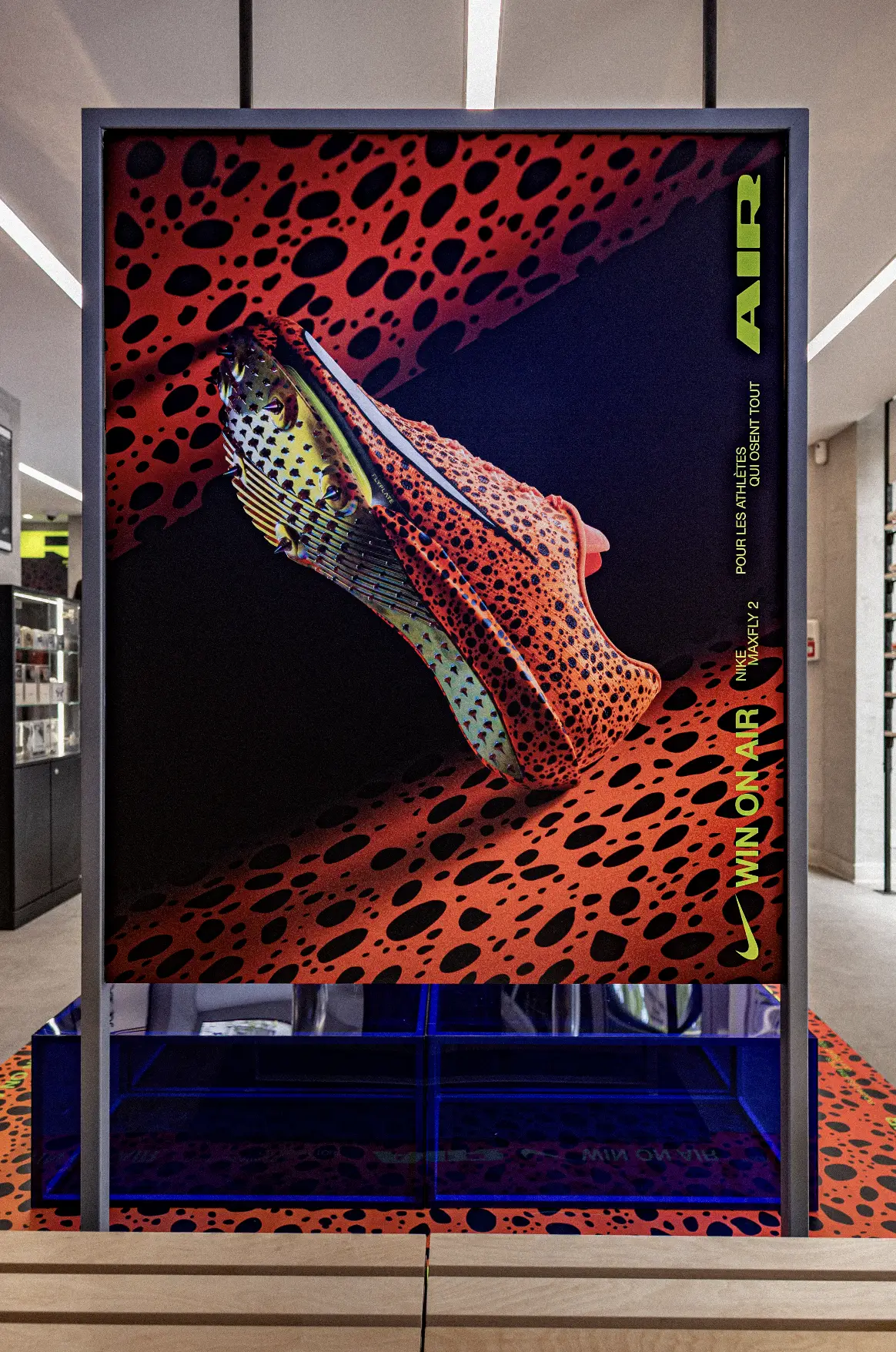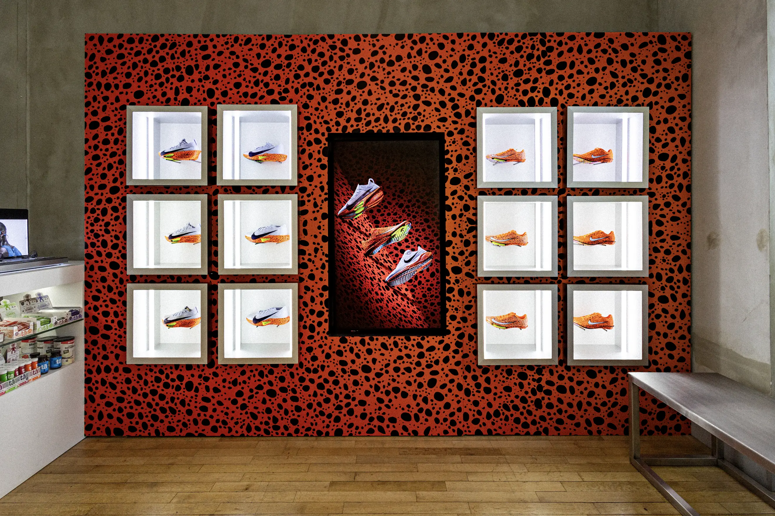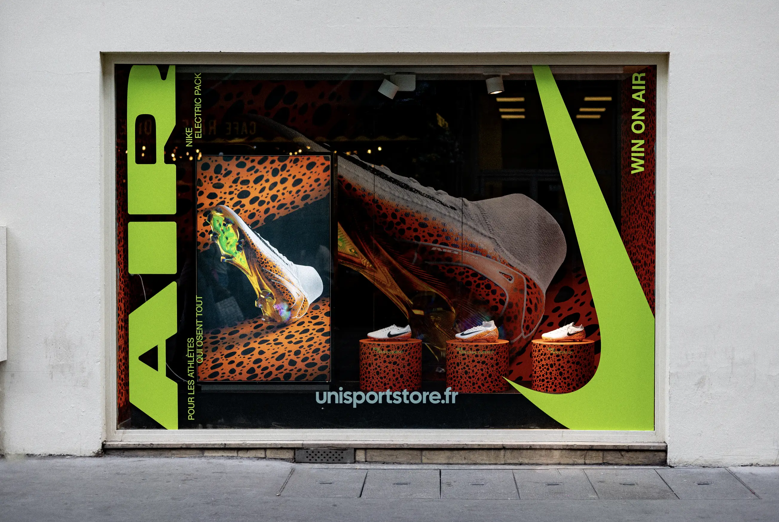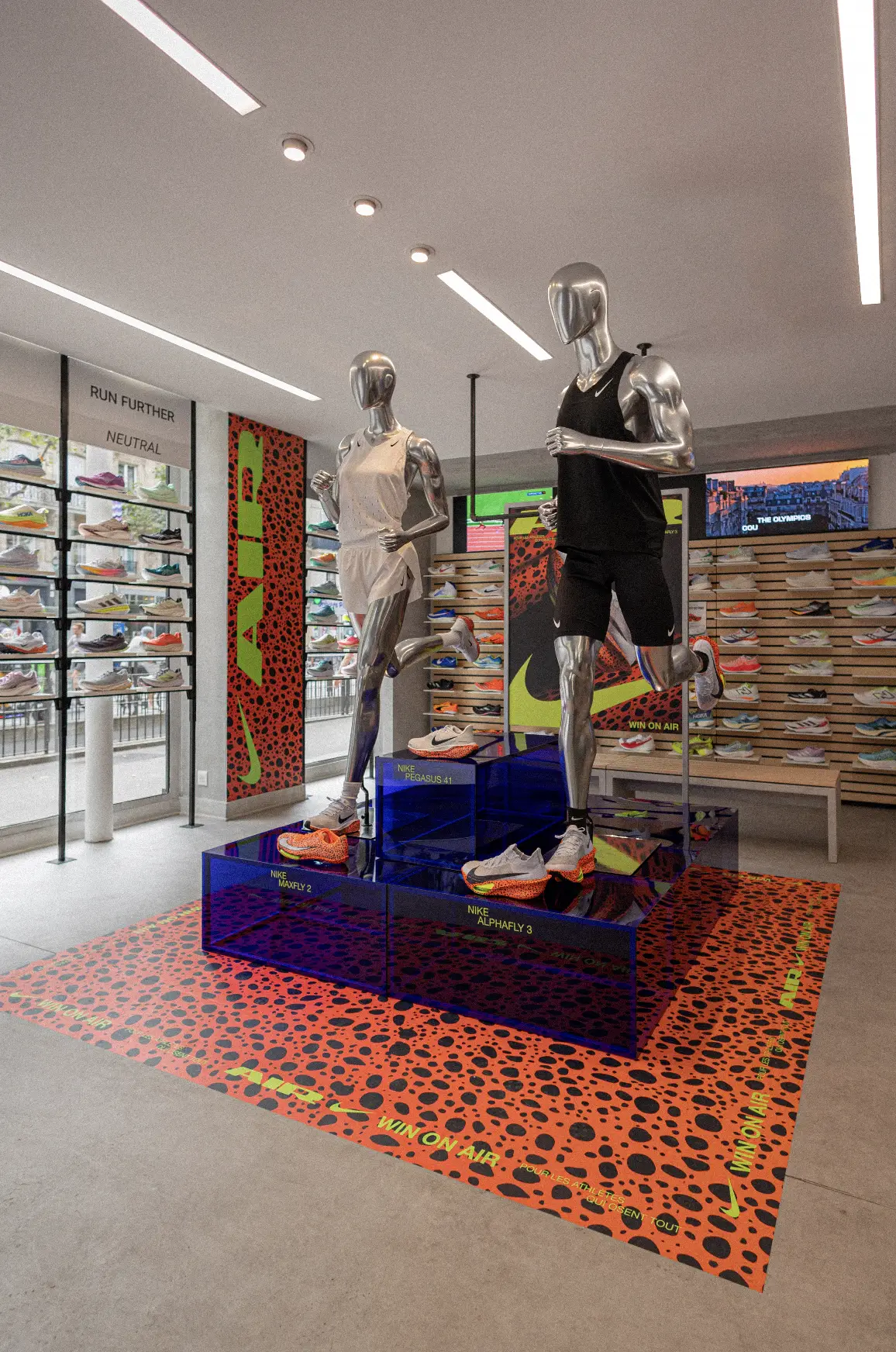 Studio AA a été mandaté par Nike pour concevoir une scénographie originale dans cinq points de vente parisiens (Top4Running, Unisport, Distance, Distance Pop-Up et XIV Store), à l’occasion du lancement du pack "Electric", dans le cadre de l’opération "Road to Paris".