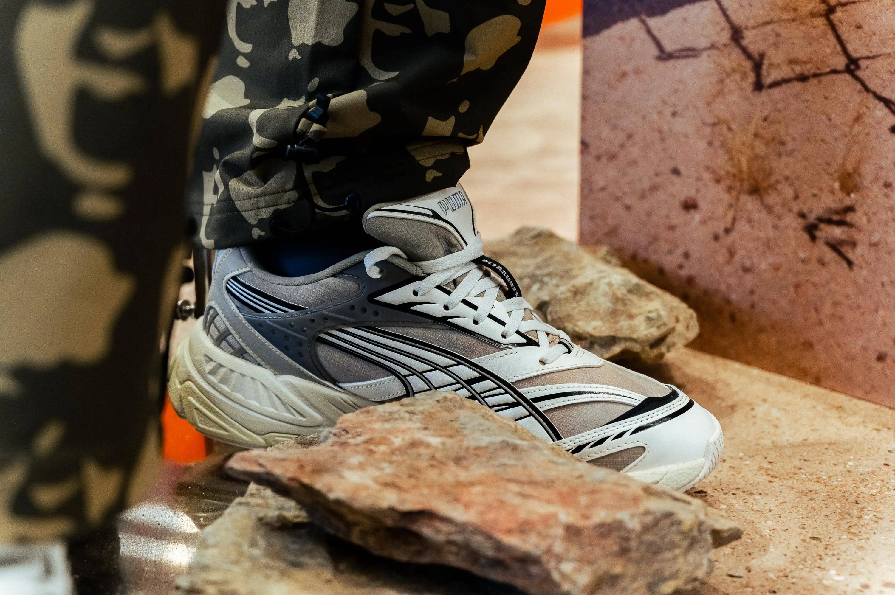 Un corps en PUMA x PLEASURES. Silhouette d’après l’effondrement.